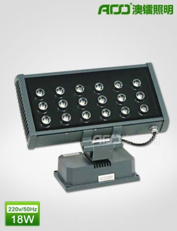 产品特性:澳镭LED投光灯采用了每瓦流明达100以上的进口大功率高亮LED芯片,亮度达到传统投光灯的3倍以上;一次冲压成型的高导热铝合金外壳,不但散 热效率更高,而且防护等级达到ip66以上,保证了在户外的复杂环境中能够稳定工作;智能芯片控制的稳压恒流防水电源,保证了灯具能够在一定 的电压内提供稳定的电流,保证了芯片能够在稳定的电流下工作;本款产品适用在广场,楼体,桥梁,公园等场所的亮化